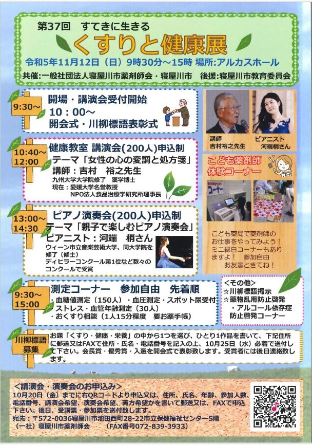 【共催】一般社団法人寝屋川市薬剤師会・寝屋川市 【後援】寝屋川市教育委員会