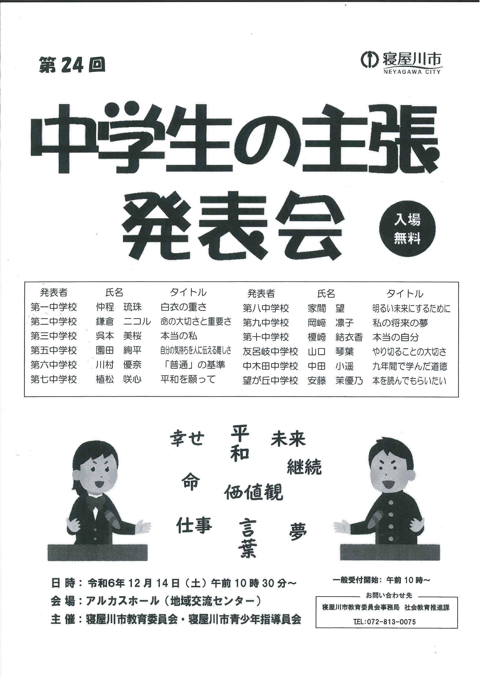 主催:寝屋川市教育委員会・寝屋川市青少年指導員会