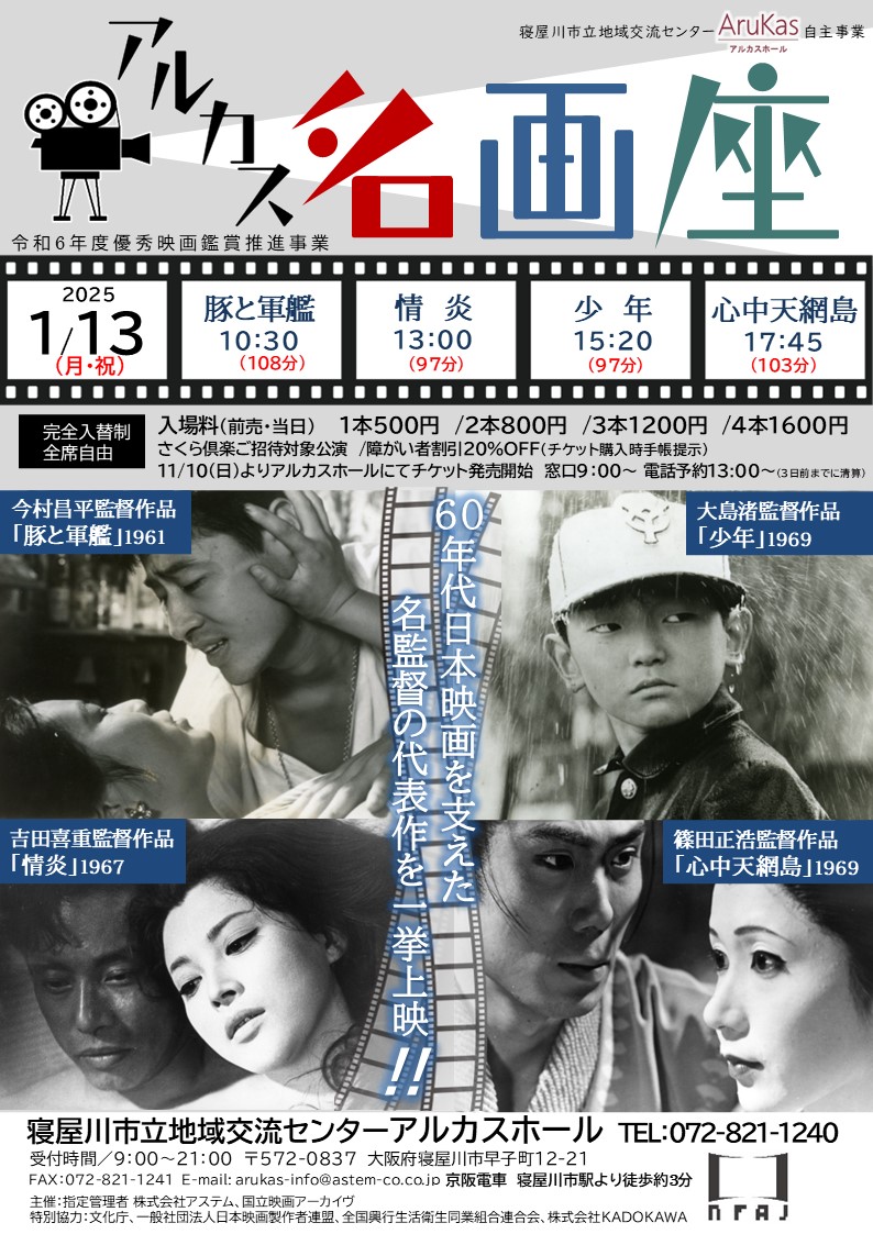 懐かしの名作映画ををフィルム上映します。 11/10(月) 9:00~窓口にて販売開始(13:00より電話予約)