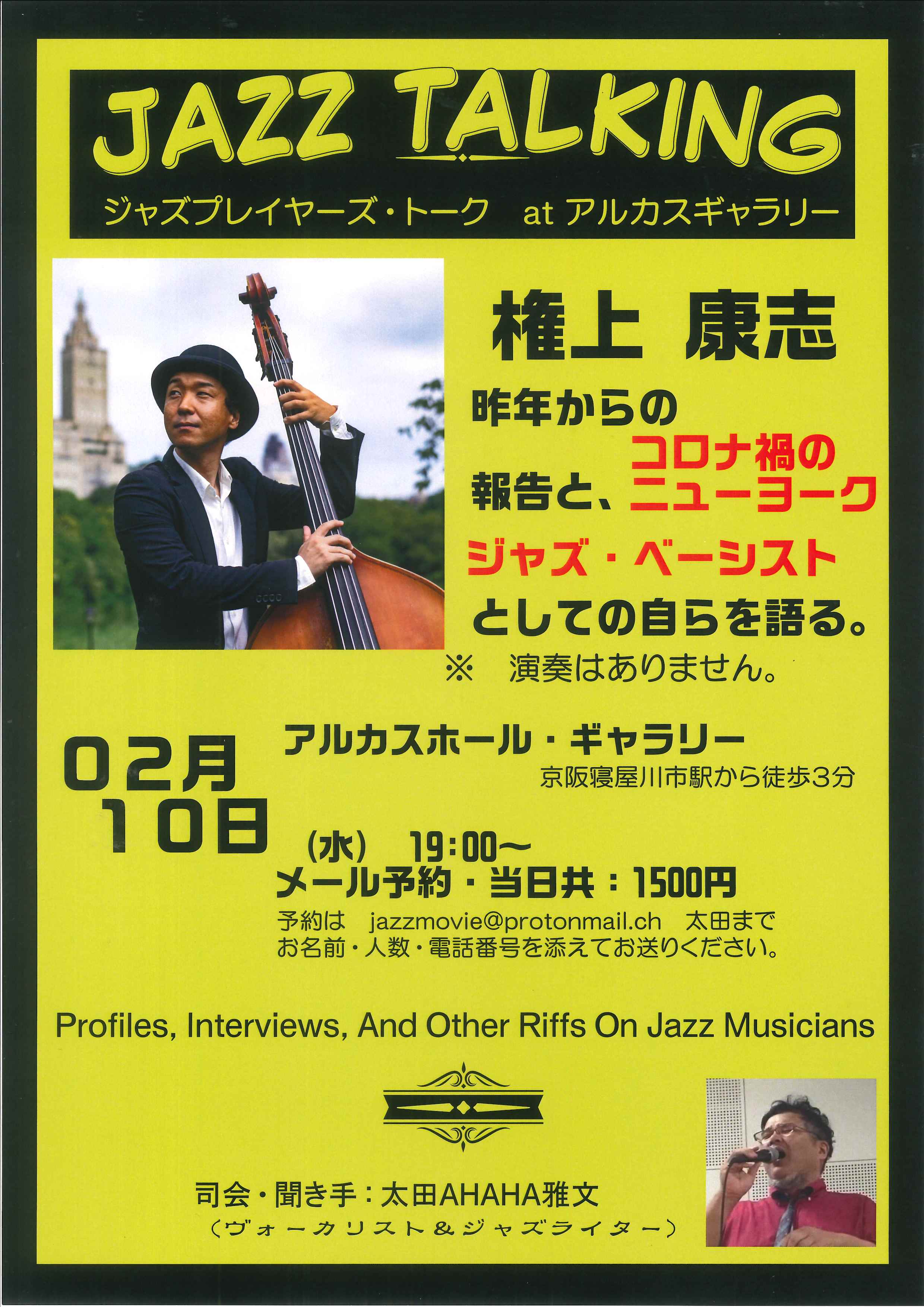 権上 康志 ~昨年からのコロナ禍の報告とニューヨークジャズ・ベーシストとしの自らを語る~ ※演奏はありません。