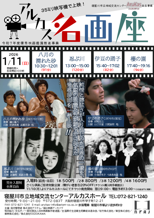 ※さくら俱楽部会員10%OFF ※障がい者割引20%OFF(チケット購入時手帳提示) ※お電話にてご予約できます。ただし、公演3日前までにご精算をお願いいたします。 |