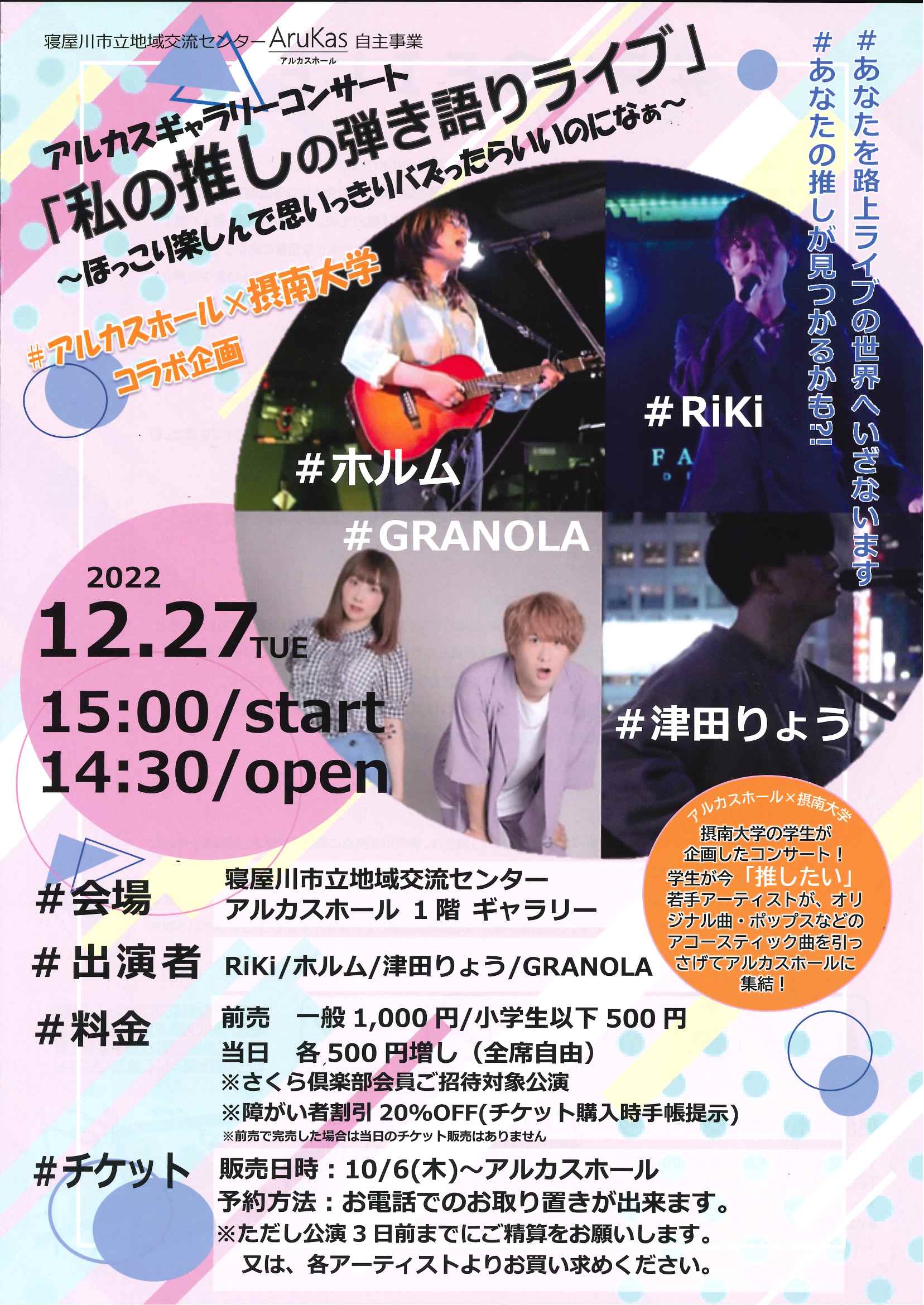 | アルカスギャラリーコンサート 「私の推しの弾き語りライブ」~ほっこり楽しんで思いっきりバズったらいいのになぁ~ |