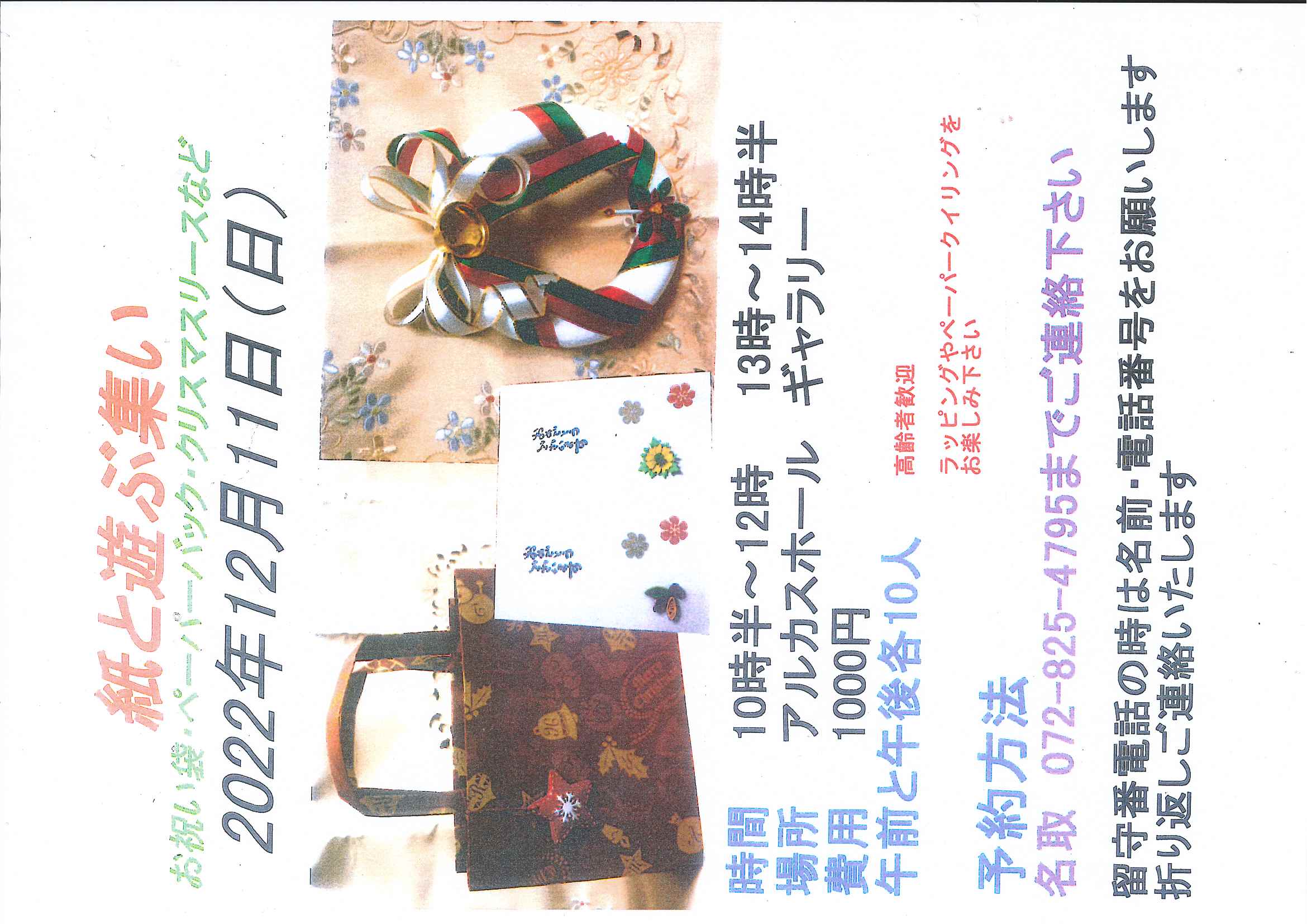 【会場】ギャラリー 【開催日】10/18(火)11/8(火)11/22(火) 12/6(火)12/20(火) 【時間】①13:00~15:30 ②16:00~18:00の2回 【参加費】 1作品 100円 |