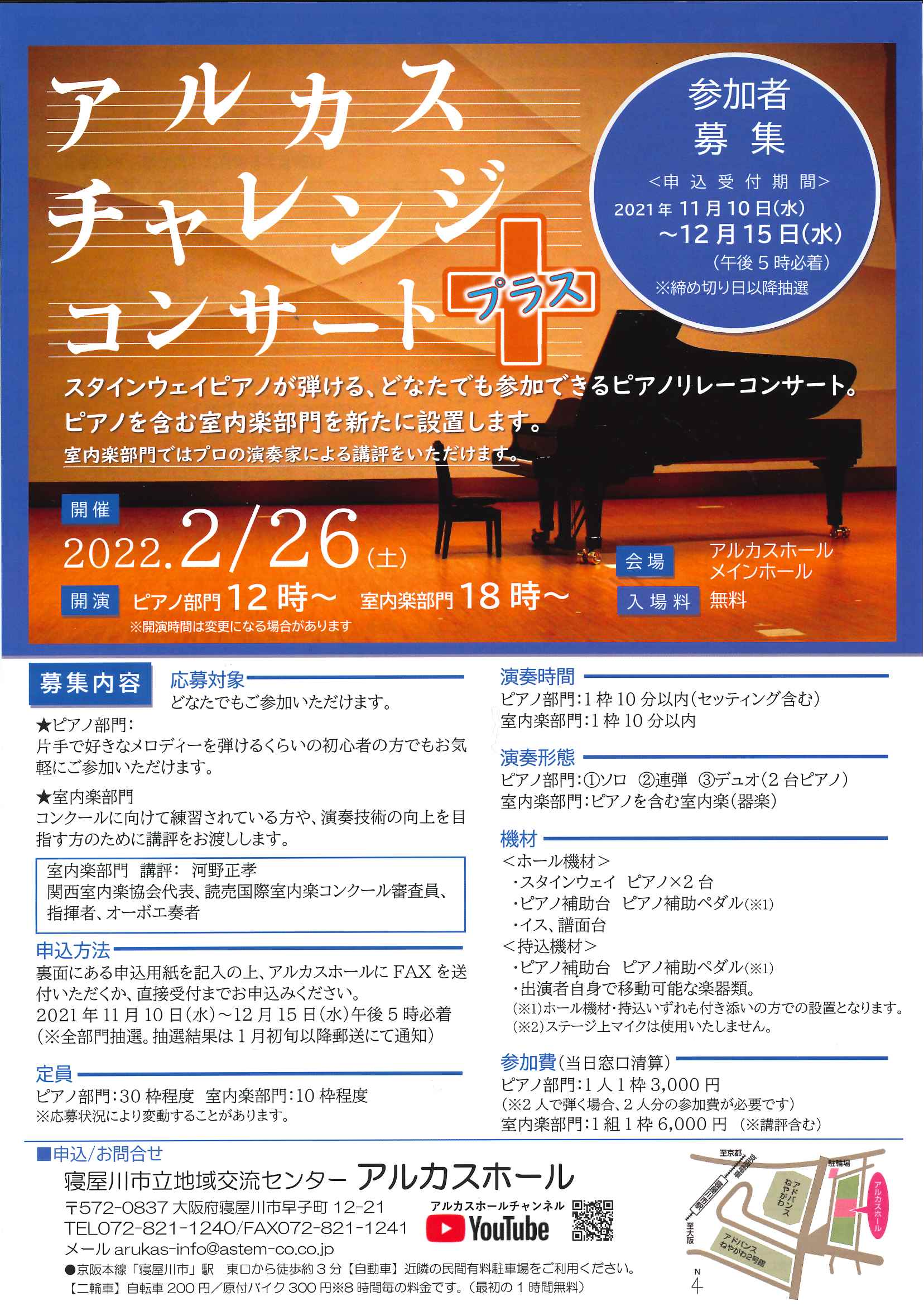 スタインウェイが弾ける、 どなたでも参加できるピアノリレーコンサート。 ピアノを含む室内楽部門を新たに設置します。