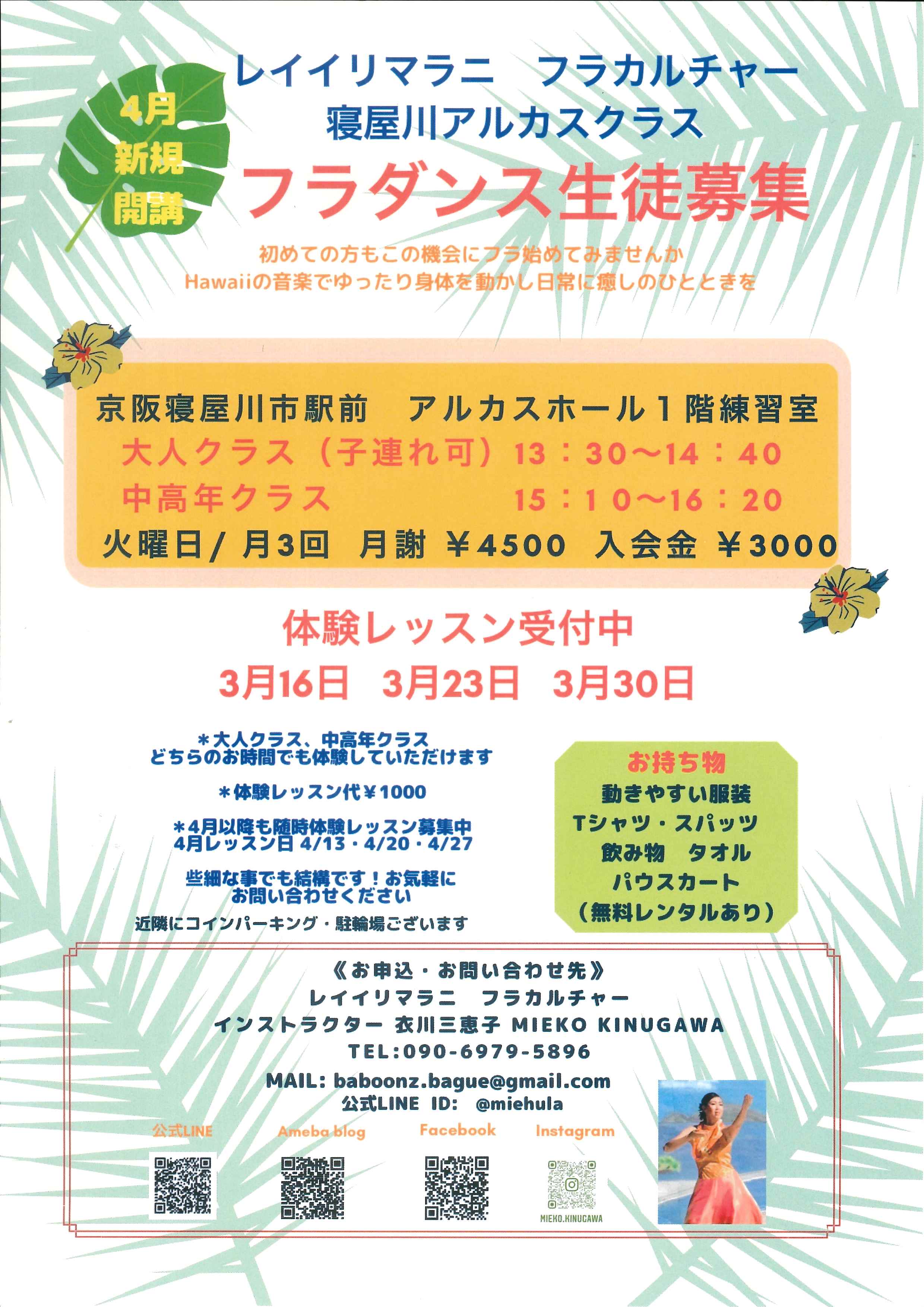 | レイイリマラニ・フラカルチャー 新規開講・初心者歓迎・体験レッスン受付中!! |