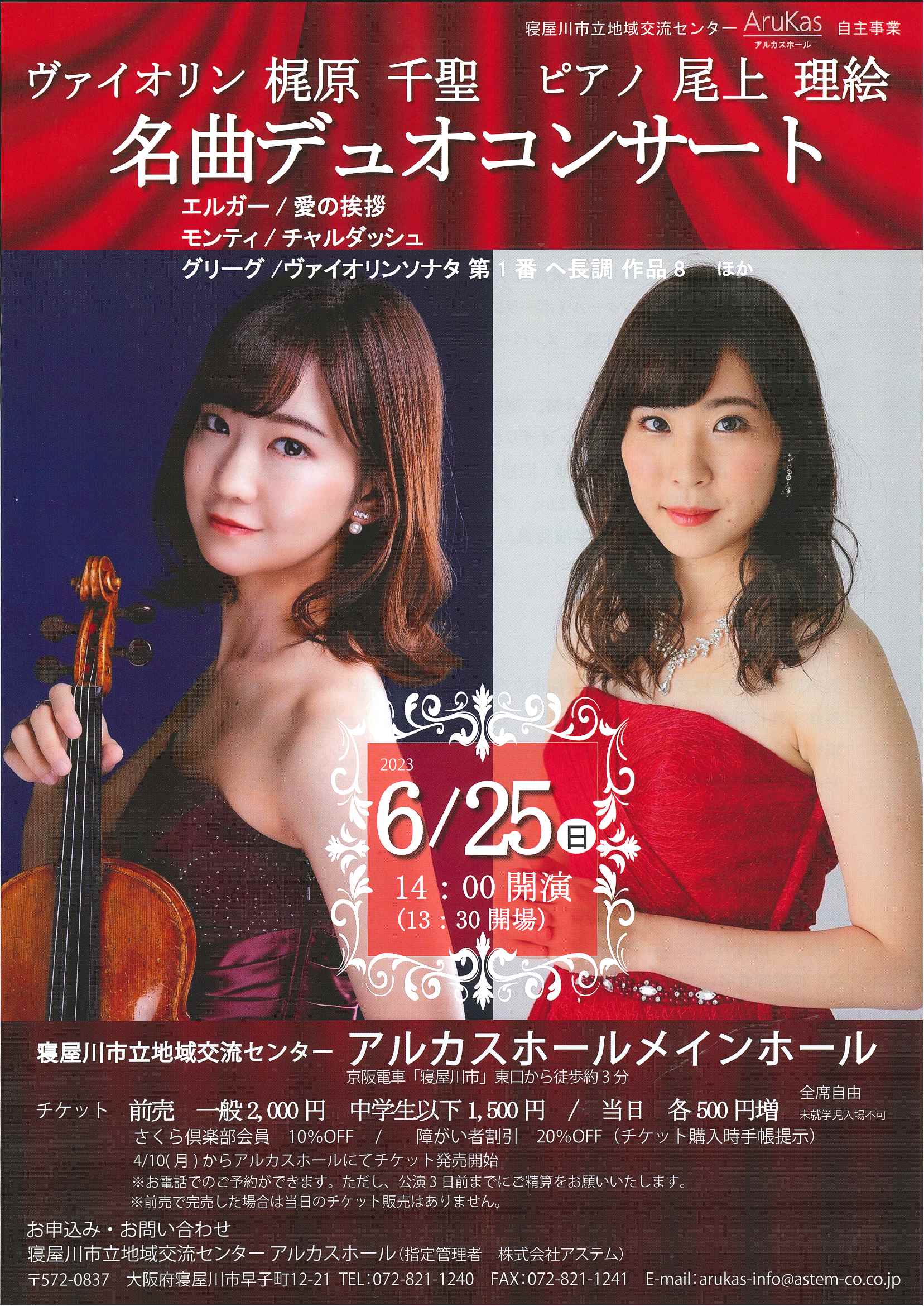 | ヴァイオリン 梶原 千聖 ピアノ 尾上 理絵 名曲デュオコンサート |