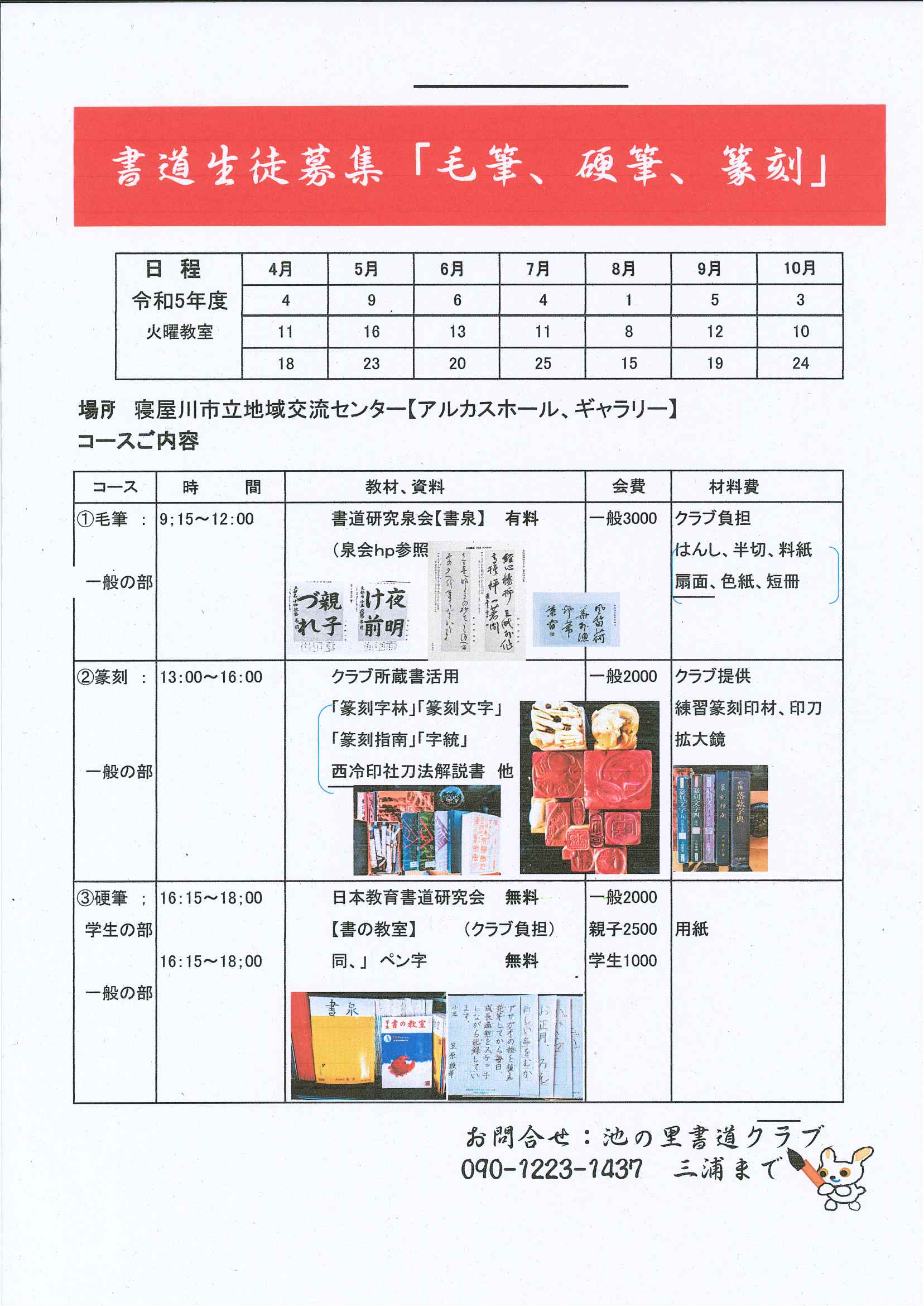 | 池の里書道クラブ 書道生徒募集 |