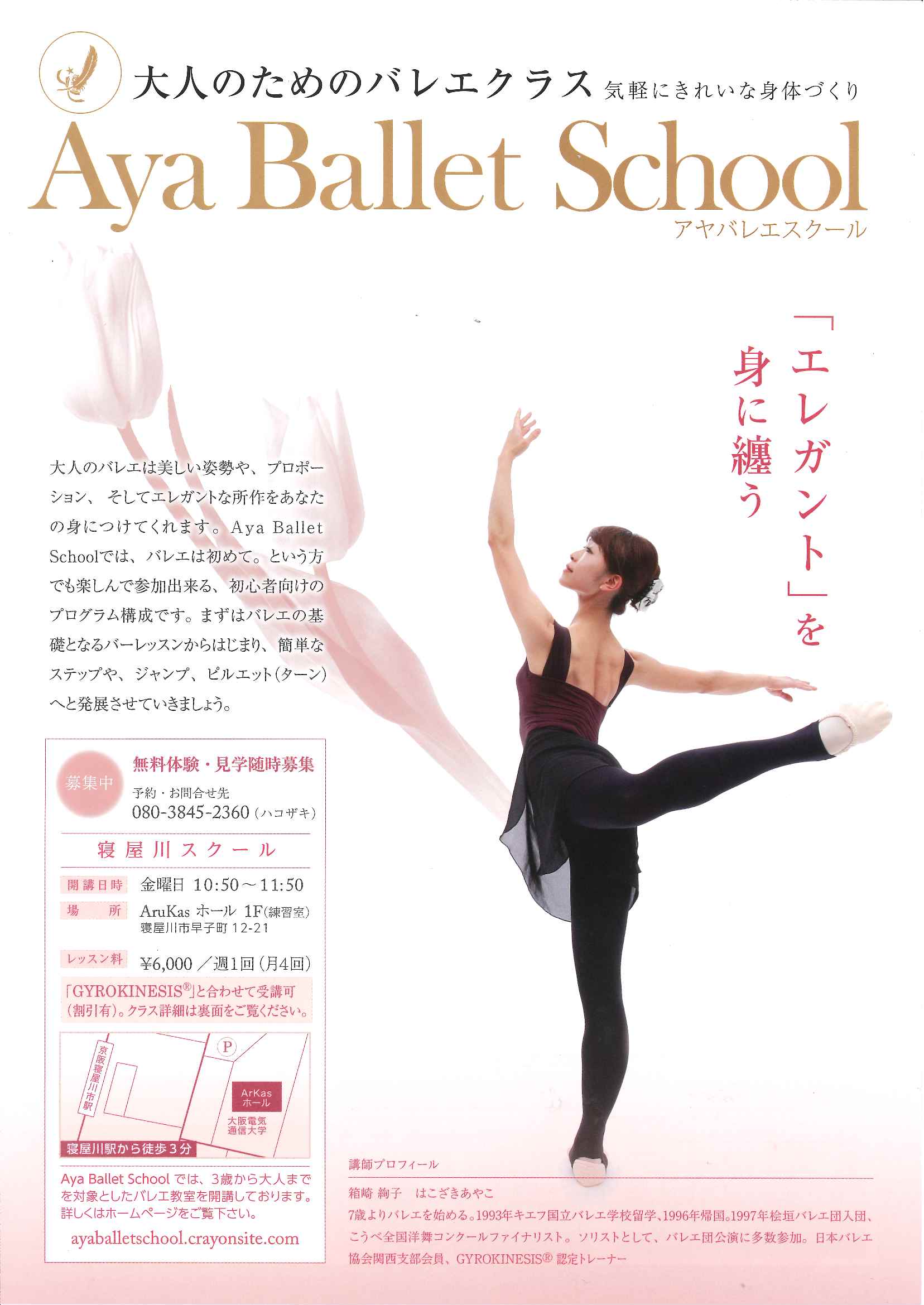 会場 練習室 時間 18:15~19:30 (はじめてバレエ) 19:40~21:10(バレエ初中級) 21:10~21:40(ポアント) |