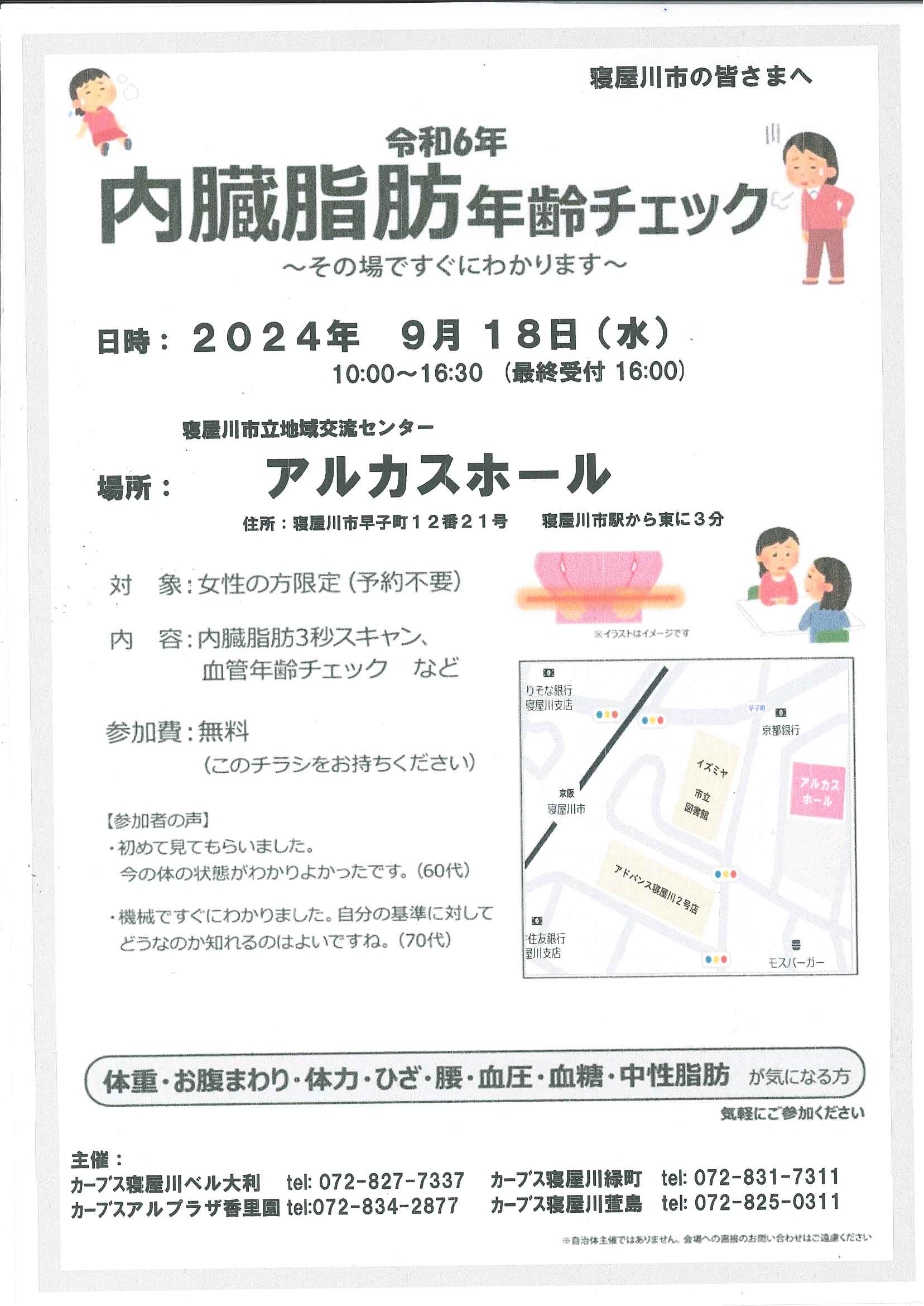 | 令和6年 内臓脂肪年齢チェック~その場ですぐわかります~ |