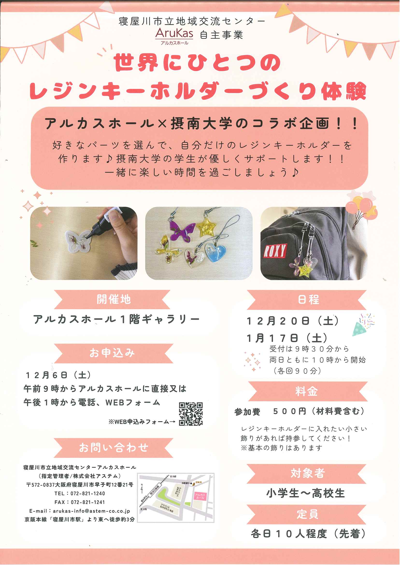 | 世界にひとつのレジンキーホルダーづくり体験(アルカスホール×摂南大学コラボ企画) |