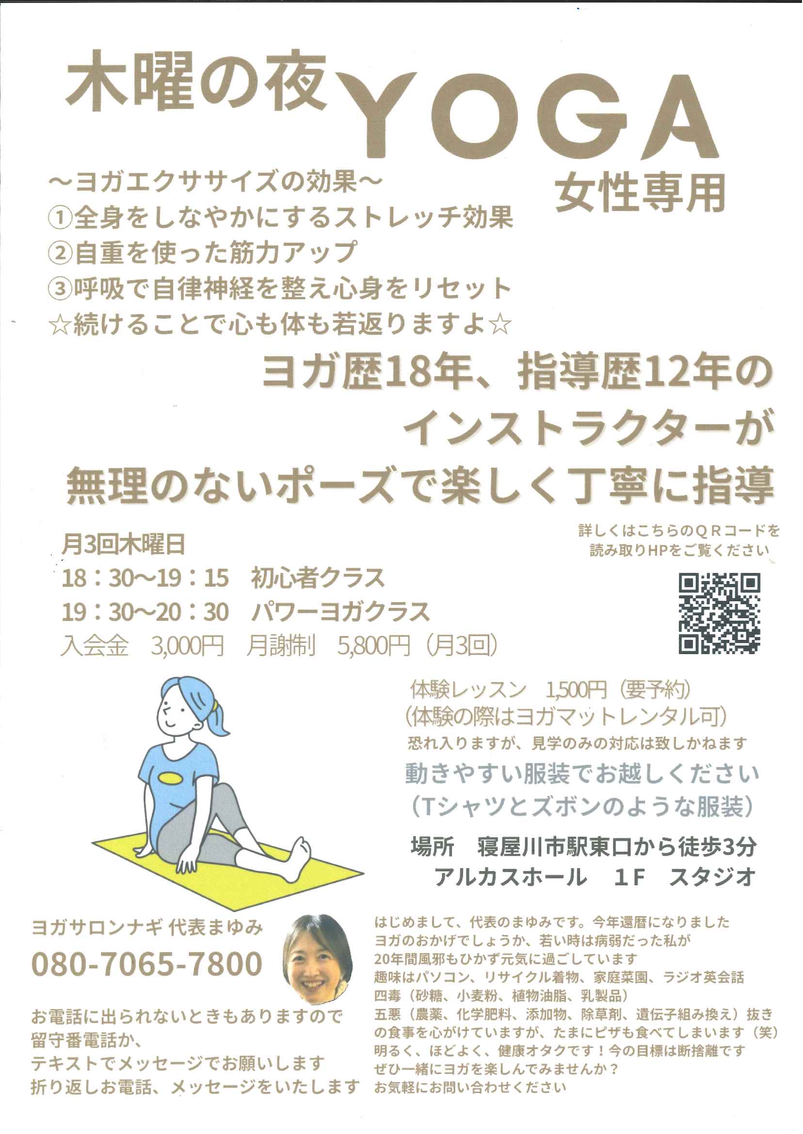【時間】18:30~19:15 初心者(ゆっくり軽い運動量) 19:30~20:30 パワーヨガ(しっかり動きます)