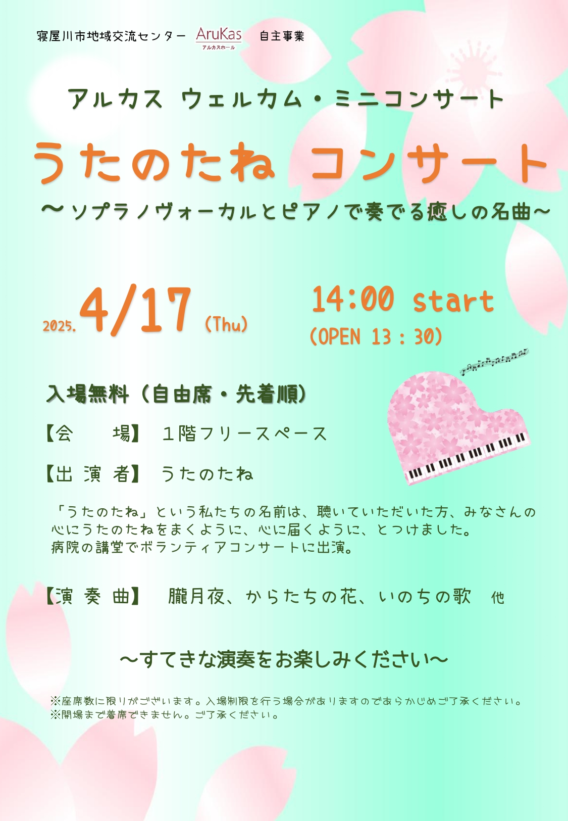 | アルカスウェルカム・ミニコンサート『うたのたねコンサート』 |