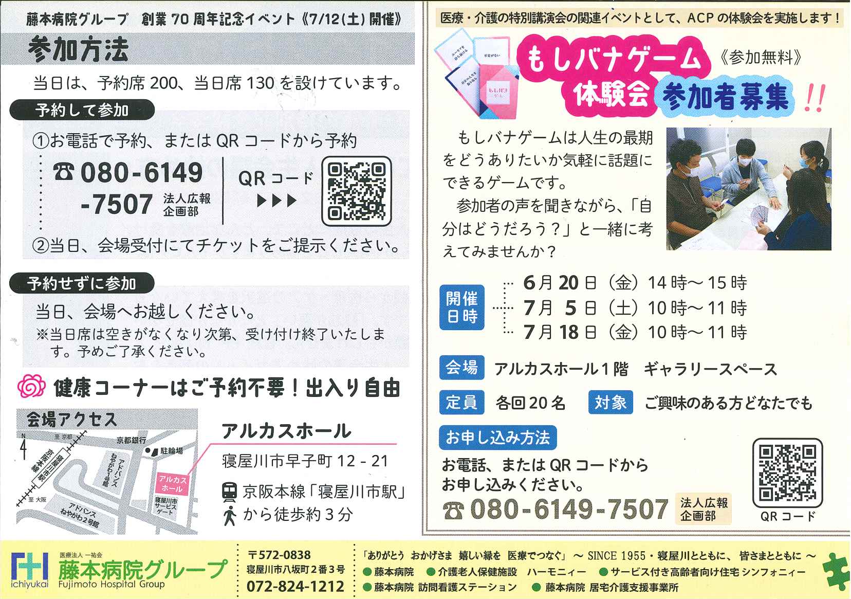 | 藤本病院グループ主催『もしバナゲーム体験会』参加者募集 |