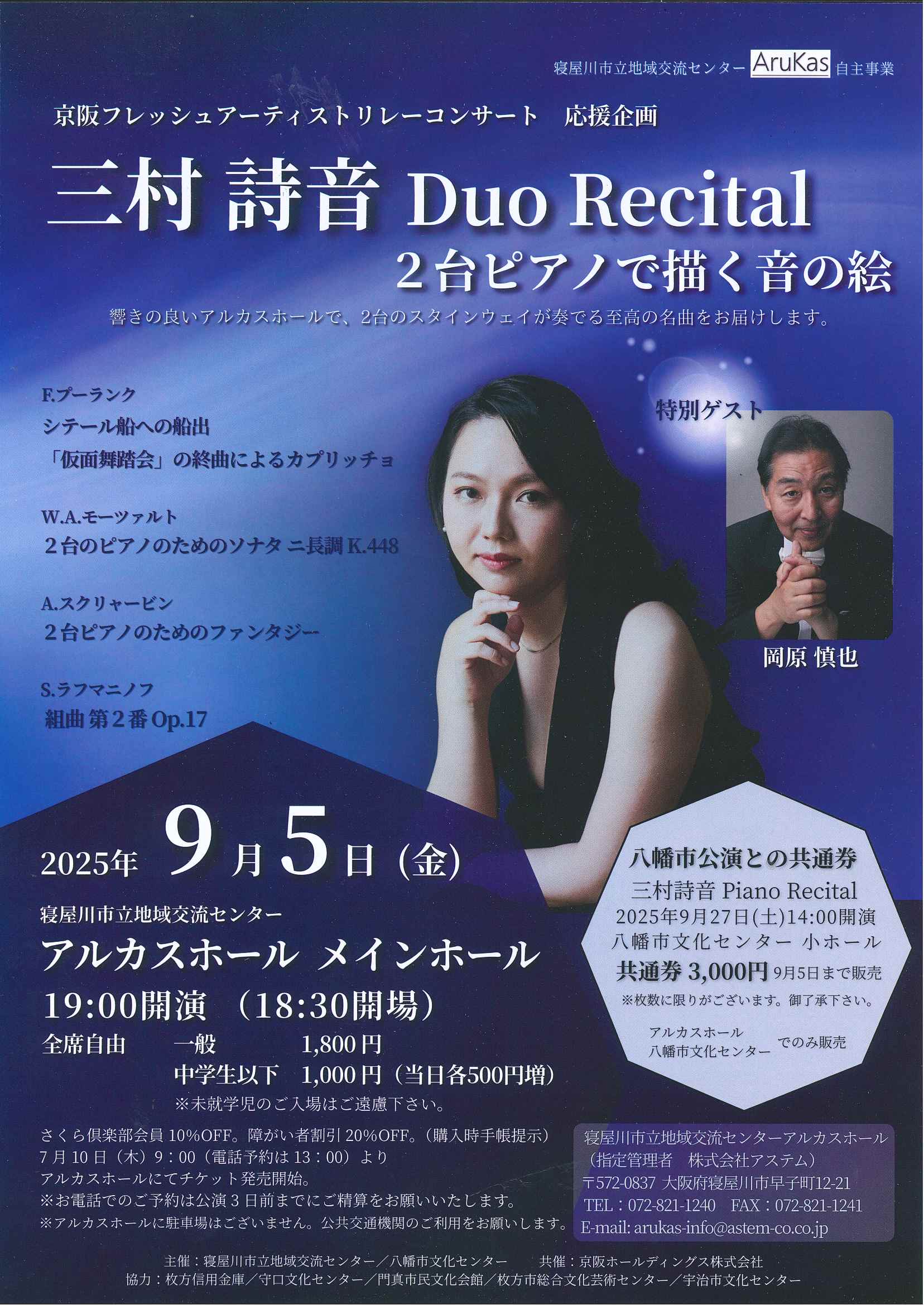 【会場】メインホール 【開演】18:00(開場17:00) 【料金】一般 :4,000円 小学生以下:1,000円 ペアチケット:6,000円 ( 当日販売無し )