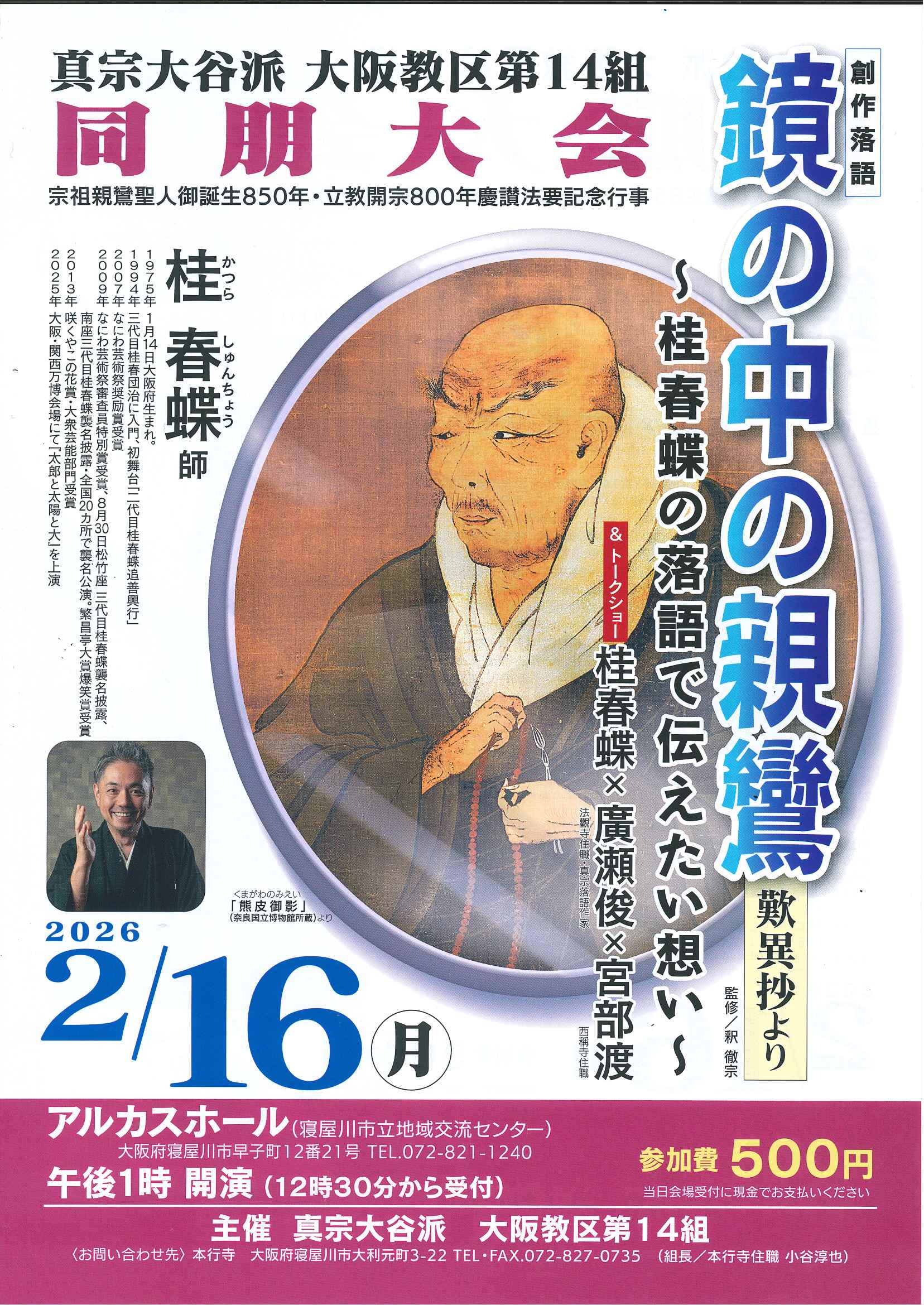 | 真宗大谷派 大阪教区第14組 同朋大会 創作落語 鏡の中の親鸞~桂春蝶の落語で伝えたい想い~&トークショー |