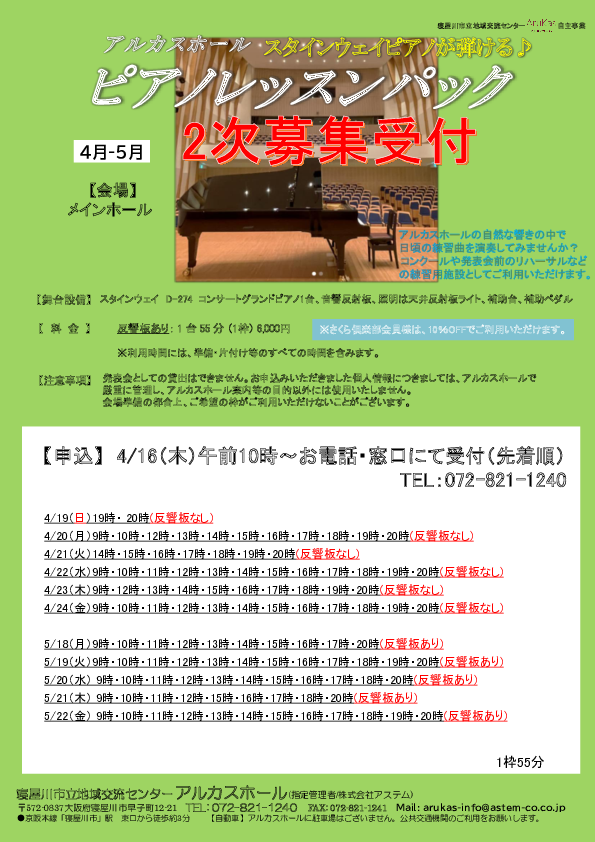 ピアノレッスンパック【4-5月】2次募集受付