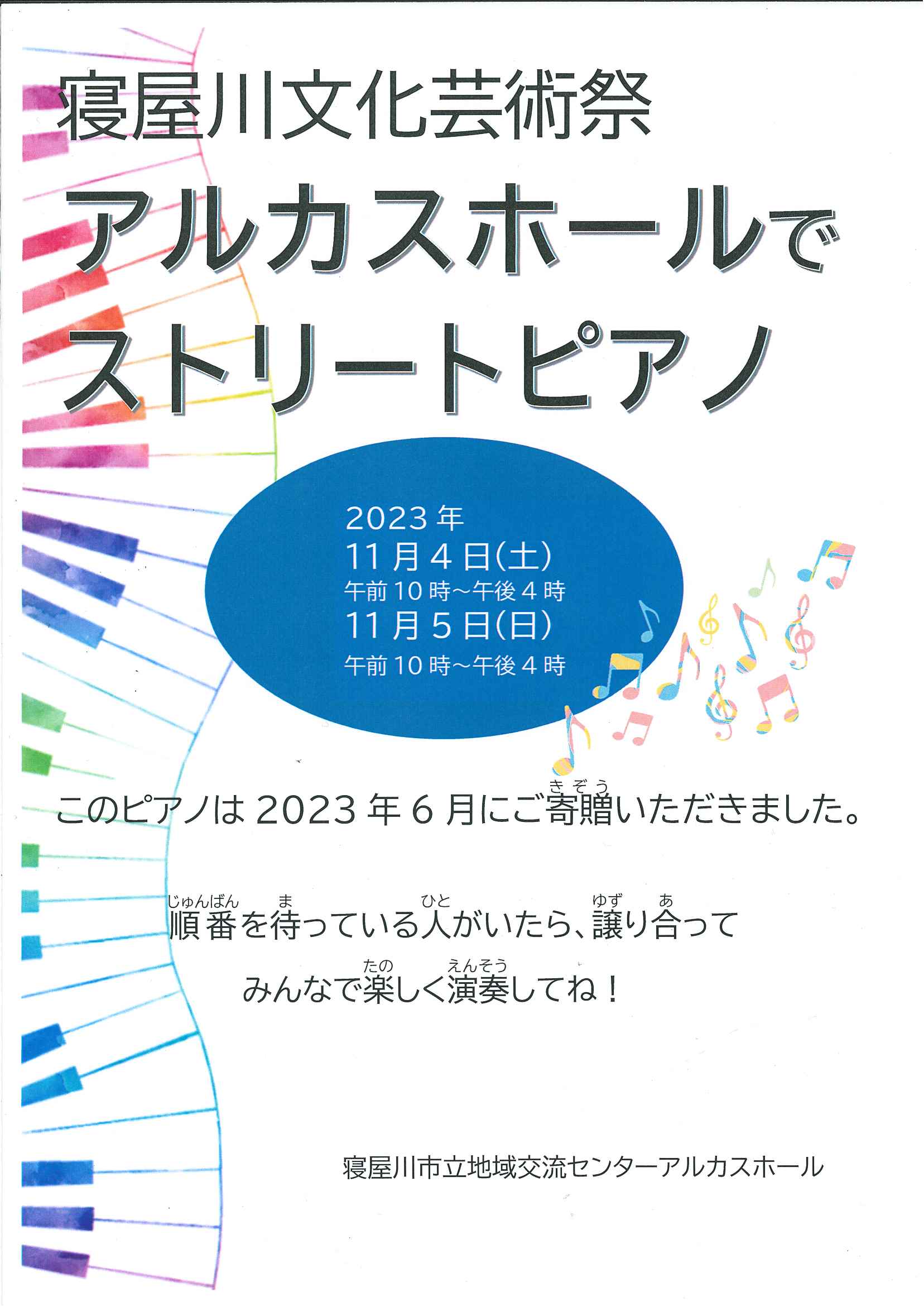 寝屋川文化芸術祭『アルカスホールでストリートピアノ』